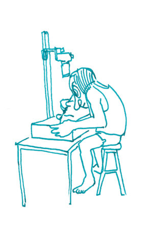 Je peins, dessine, anime, ou fais tout en même temps. Mon travail se déploie sur des formats minuscules, des installations immersives, des projections à grande échelle, des écrans de cinéma ou sur un coin de table.