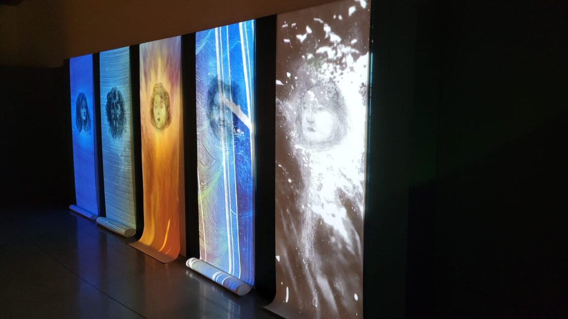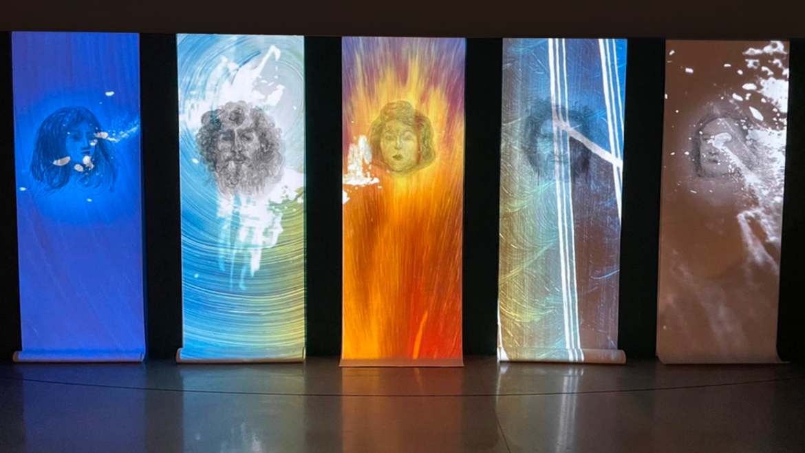 “Pour composer les animations qui chevauchent de manière cyclique les visages couchés sur de grandes feuilles de papier déroulées à la verticale, Khalifé s’est inspirée des paysages montréalais, en faisant écho à la montagne, au ciel, au vent, au fleuve et au port.